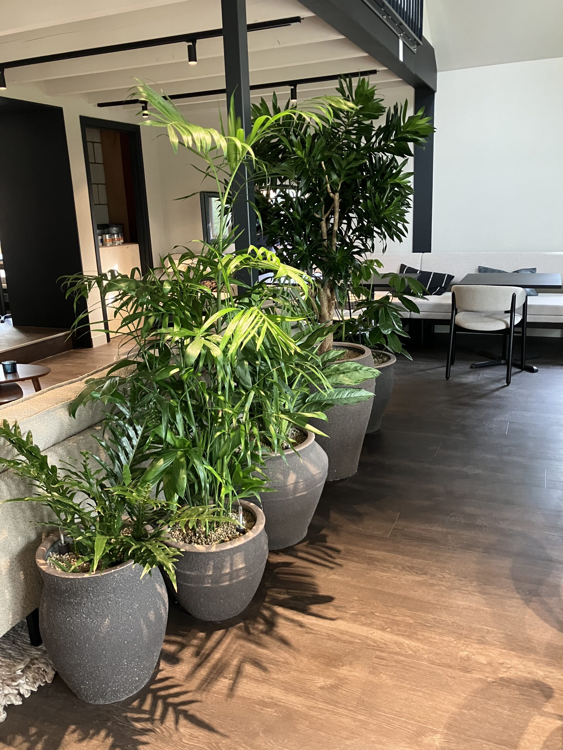 Aan alles is gedacht, en niets ontbreekt om de medewerkers fit en vitaal te houden (zelfs een eigen padelbaan ). Maar natuurlijk mogen planten niet ontbreken! Geen standaard exemplaren, maar zorgvuldig geselecteerde groene krachtpatsers om de sfeer van het compleet nieuwe interieur kracht bij te zetten.